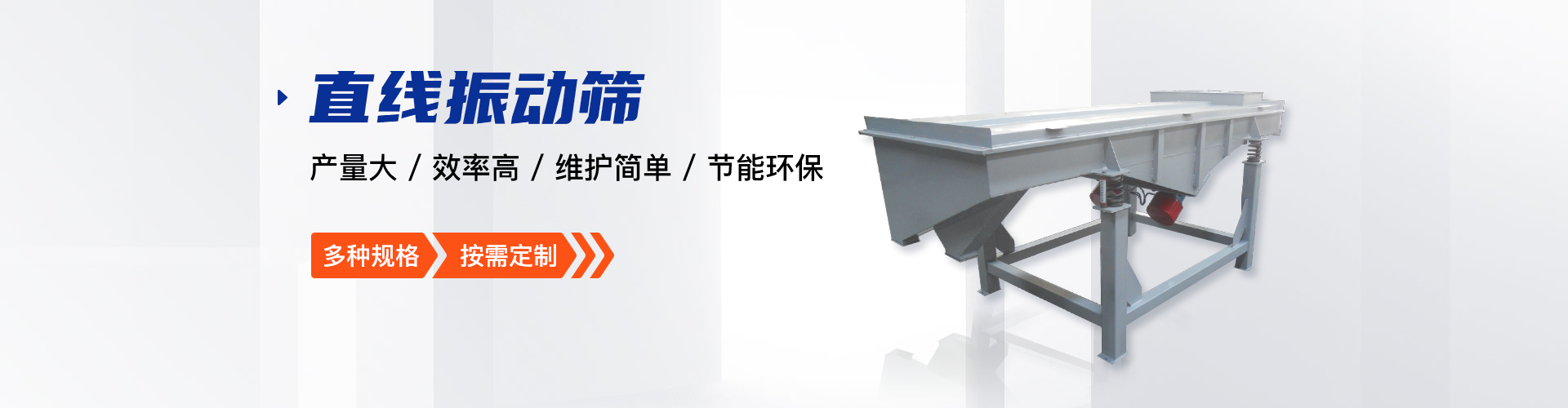 公司的主要產(chǎn)品有:三次元旋振篩、直線(xiàn)振動(dòng)篩、圓形搖擺篩、方形搖擺篩、脫水篩、超聲波振動(dòng)篩、塑料振動(dòng)篩、直排篩、高頻篩、450過(guò)濾篩、實(shí)驗(yàn)篩、斗式提升機(jī)、皮帶輸送機(jī)、過(guò)濾器、振動(dòng)電機(jī)等,
